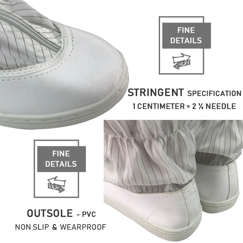 Cleanroom anti-stabilis tabernus sunt disposito consolatione in mente. Usus Eva materia facit tabernus mollior et habet bonum inpulsa-absorbing effectus, quod reducit impulsum in pedes et non causa lassitudine post longum-term lapsum. Quod tabernus lining factum est de amet materiae ut arida pedes et amplius amplio circumdatio consolatio.